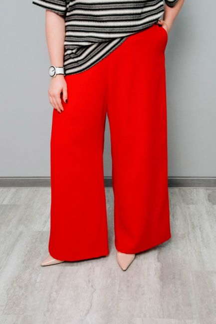 - Брюки имеют расширение к низу, что зрительно делает талию уже