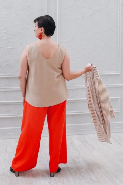 Параметры модели на фото: объем груди 108 см, объем талии 93 см, объем бедер 114 см, рост 165 см