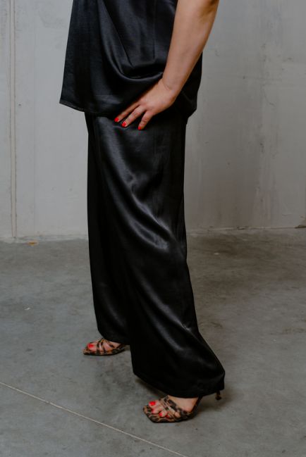 - Широкие струящиеся брюки на комфортной резинке по талии