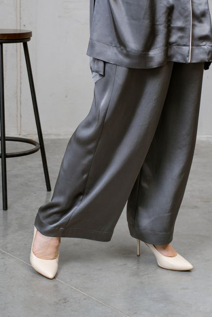 - Широкие струящиеся брюки на комфортной резинке по талии