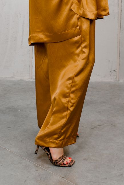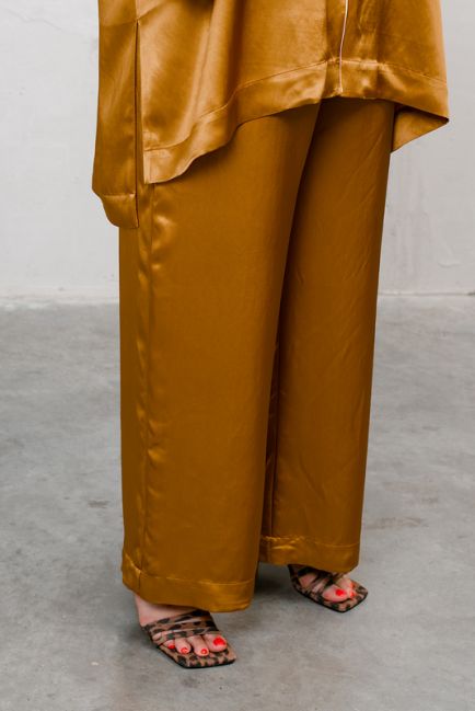 - Широкие струящиеся брюки на комфортной резинке по талии