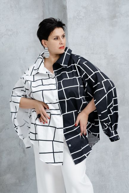 - Рубашка уплощенного кроя (по мужскому типу, то есть не выделяющая объем женской груди)