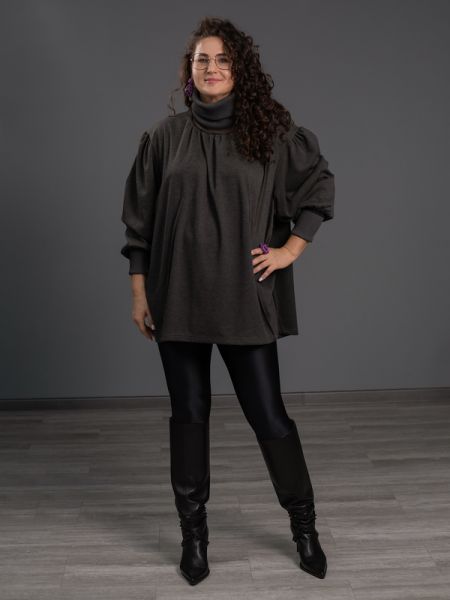 - Свитер из плотного трикотажа, в котором учитывается объем шикарной женской груди