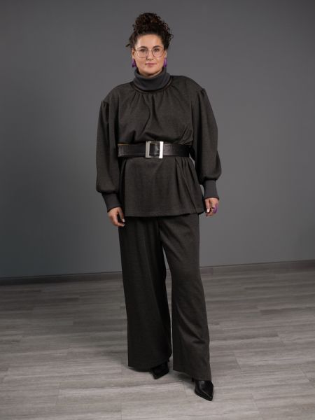 - Широкий объем сверху сбегает к зауженному низу для правильного силуэта фигуры