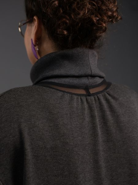 - Вставки из сеточки на горловине и манжетах придают изделию изящество