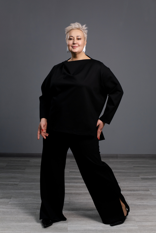 • Мягкий вырез "лодочкой" вытягивает шею и придаёт нежность плечевому поясу. Небольшой объем можно заколоть брошью или оставить в свободном полёте