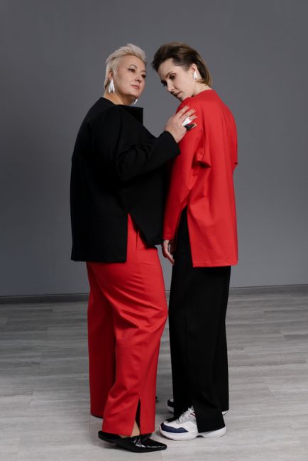 • Свитшот из трикотажа ложится более мягко, создавая текучий силуэт. Джерси формирует более чёткий силуэт