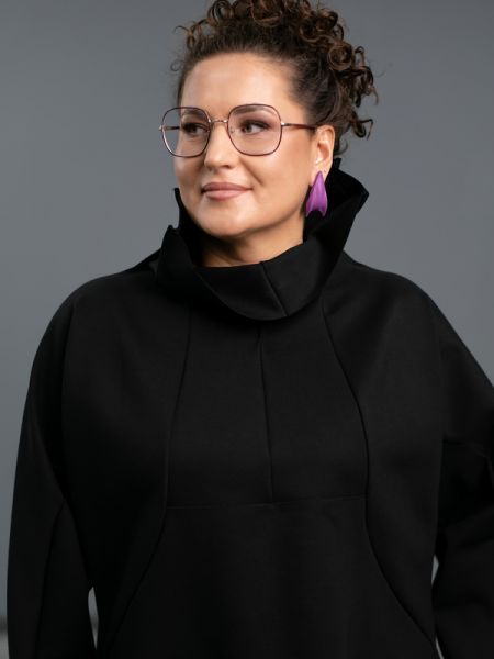 - Свитшот - отдельная гордость наших дизайнеров. Он кажется простым из-за свободного кроя, но содержит в себе сложную конструкторскую разработку. Свитшот возможно носить девушкам с разными объемами тела и ростом