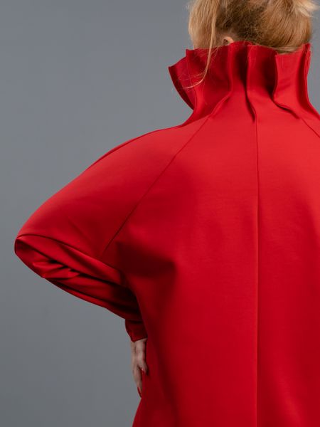 - Воротник позволяет моделировать любые варианты носки: при поднятом воротнике мы получаем строгие линии воротника стойки. Можно отогнуть только спереди и получится более свободный вариант. Или вариант - полностью отогнутый воротник - и вот уже шея красиво обнажена