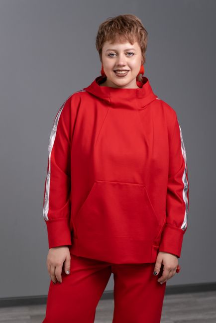 - Разрезы по бокам позволяют удобно садиться свитшоту на широкие бедра