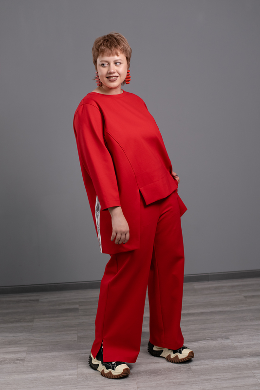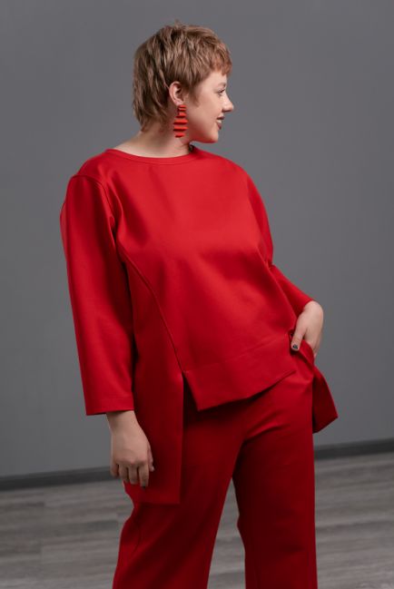 • Разрезы по бокам позволяют удобно садиться свитшоту на широкие бедра
