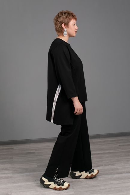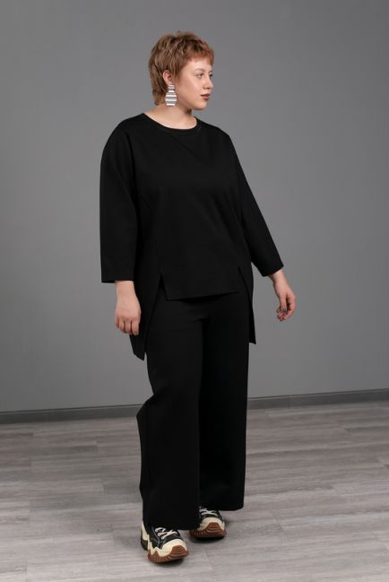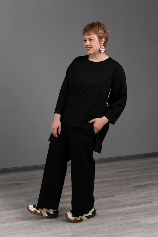 - Разрезы по бокам позволяют удобно садиться свитшоту на широкие бедра