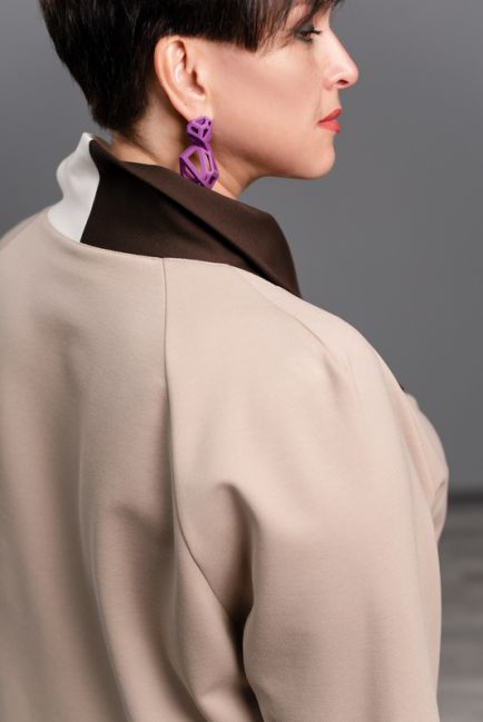 - Удобный рукав-реглан не сковывает движения, а его широкий низ делает женские запястья соблазнительными