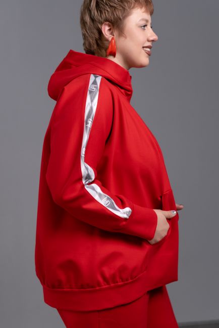 - Благодаря передней стойке капюшона, худи не съезжает назад и удачно подчёркивает линию лица