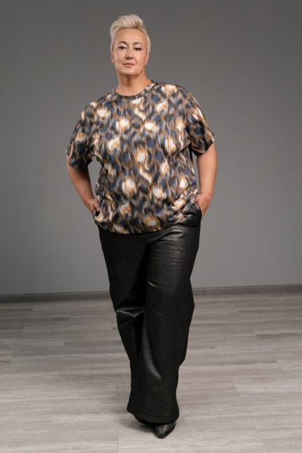 Параметры модели на фото: объем груди 136 см, объем талии 113 см, объем бедер 135 см, рост 175 см