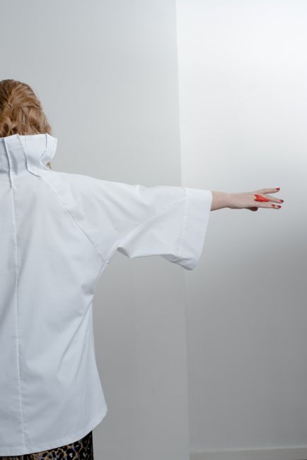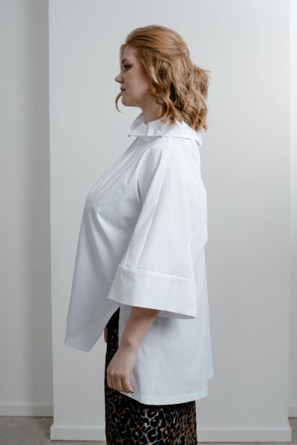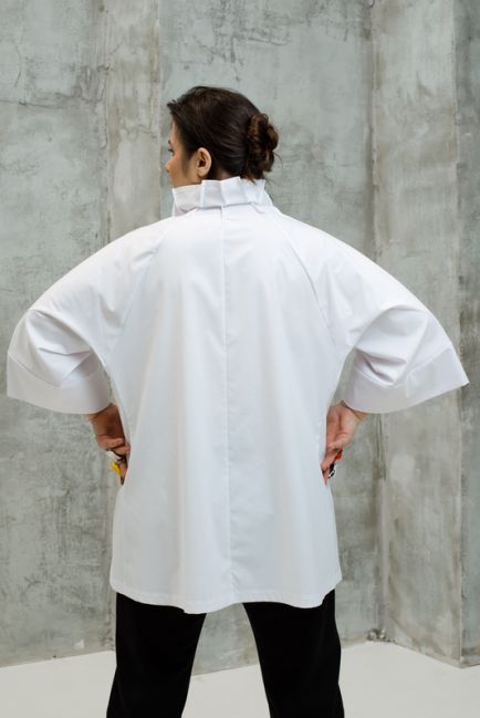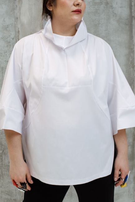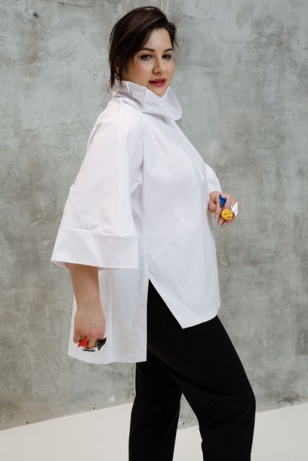 - Особая наша гордость - конструкция воротника-стойки. Топ легко одевается. Воротник красиво стоит, не стесняет движения головы и шеи. Конструкция воротника красиво оформляет лицо. Воротник можно подвернуть на любую сторону, создавая новые образы