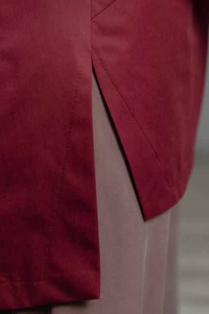 - Боковой подрез на передней полочке создаёт стройнящую линию талии