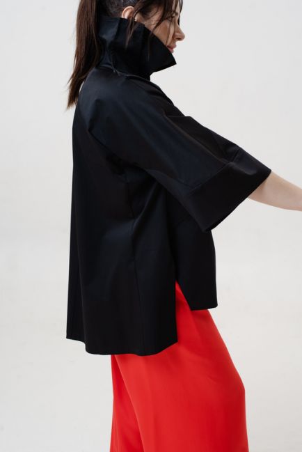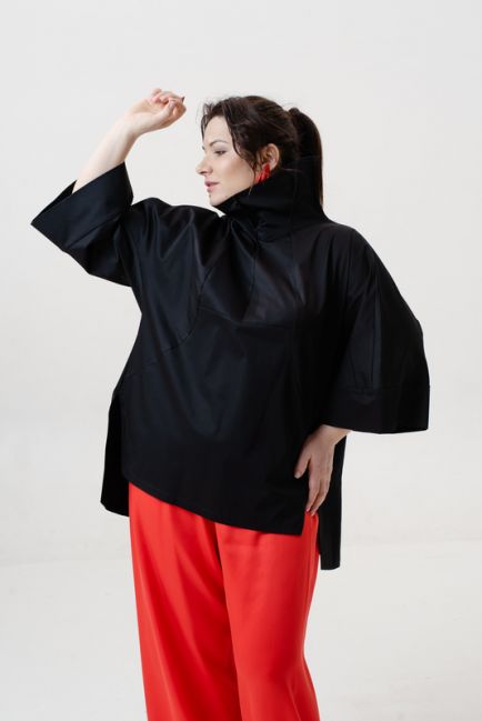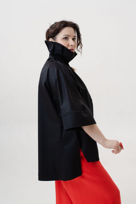 - Особая наша гордость - конструкция воротника-стойки. Топ легко одевается. Воротник красиво стоит, не стесняет движения головы и шеи. Конструкция воротника красиво оформляет лицо. Воротник можно подвернуть на любую сторону, создавая новые образы
