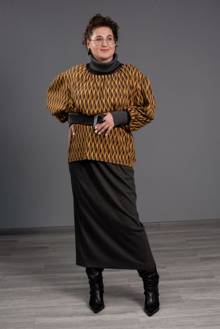 - Трикотажная юбка-карандашик с изящным шлейфом сзади для комфорта в движении