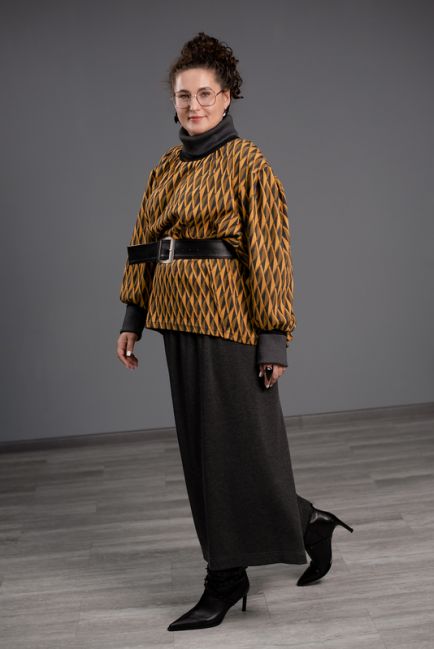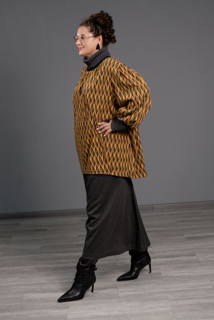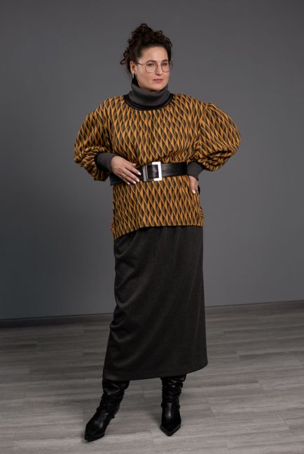 Параметры модели на фото: объем груди 120 см, объем талии 98 см, объем бедер 117 см, рост 168 см