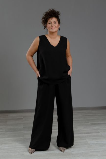 • Брюки имеют расширение к низу, что зрительно делает талию уже