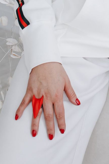 Комплект из пары сережек и кольца красного цвета
