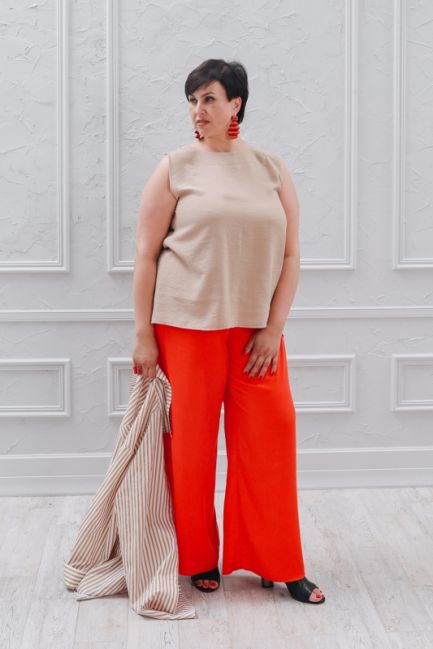 Параметры модели на фото: объем груди 108 см, объем талии 93 см, объем бедер 114 см, рост 165 см