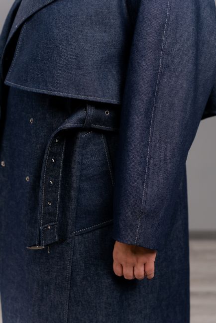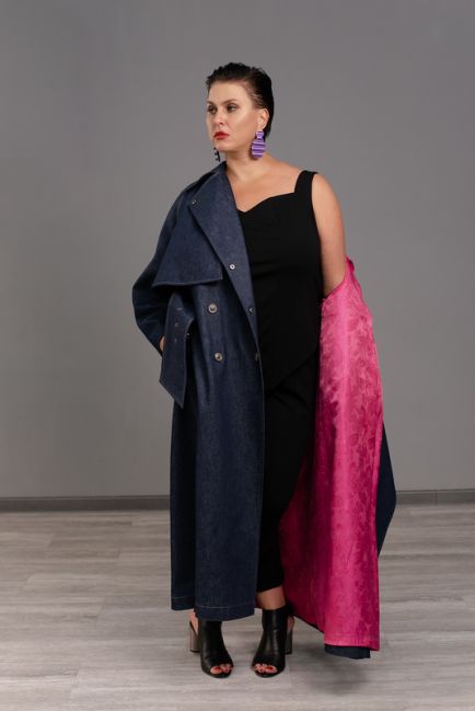 - Несколько вариантов застёжки на стильные кнопки в виде пуговиц позволяют застегнуться полностью до верха или оставить распахнутыми лацканы. Кнопки расположены согласно законам зрительного восприятия - на убывание к низу для формирования стройного силуэта