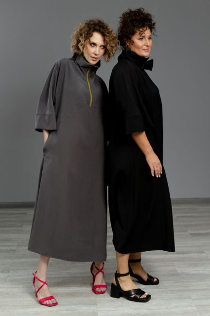 • Фасон этого платья - отдельная гордость наших дизайнеров. Платье кажется простым из-за свободного фасона, но оно содержит в себе сложную конструкторскую разработку