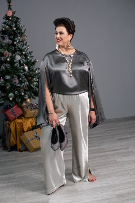 Параметры модели на фото: объем груди 120 см, объем талии 98 см, объем бедер 117 см, рост 168 см