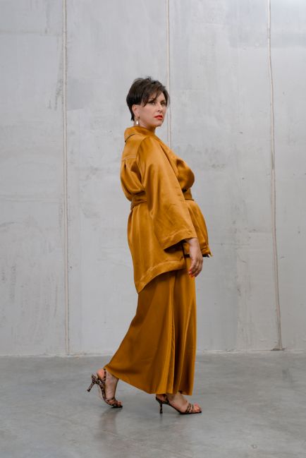 - Шелк - это всегда эстетика. Материал выглядит очень красиво и переливается под воздействием световых лучей. Поэтому наряды из него выглядят эффектно и богато. Ткань хорошо пропускает воздух, что способствует терморегуляции. Шелк очень практичен в использовании, сохраняет первоначальный вид на протяжении многих лет. Не вызывает раздражений и аллергии.