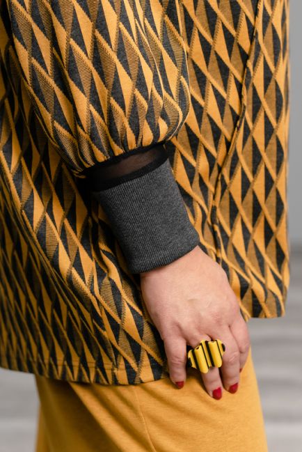 - Модный элемент - сборка на рукаве, как отсылка с историческому костюму конца 19 века, выправляет силуэт от округлостей к более жёсткому