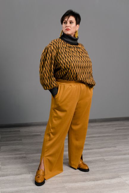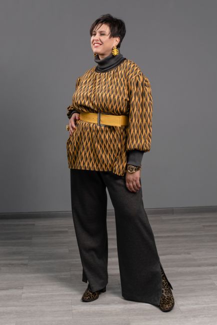 - Широкий объем сверху сбегает к зауженному низу для правильного силуэта фигуры