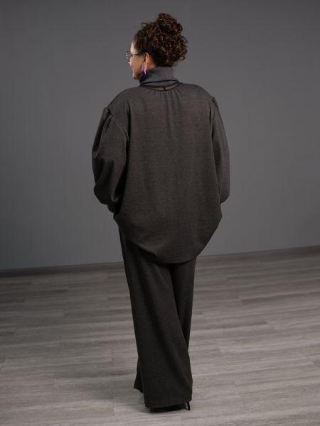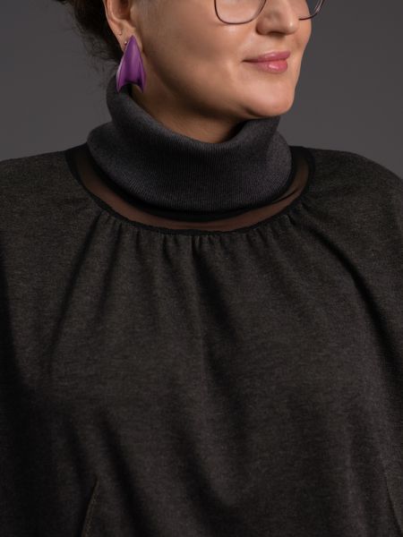 - Свитер из плотного трикотажа, в котором учитывается объем шикарной женской груди