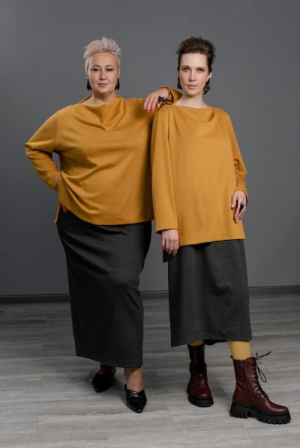 • Свитшот из трикотажа ложится более мягко, создавая текучий силуэт. Джерси формирует более чёткий силуэт