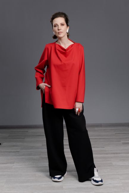 • Мягкий вырез "лодочкой" вытягивает шею и придаёт нежность плечевому поясу. Небольшой объем можно заколоть брошью или оставить в свободном полёте