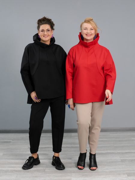 - Свитшот - отдельная гордость наших дизайнеров. Он кажется простым из-за свободного кроя, но содержит в себе сложную конструкторскую разработку. Свитшот возможно носить девушкам с разными объемами тела и ростом