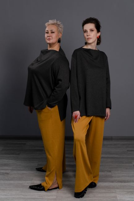 • Свитшот из трикотажа ложится более мягко, создавая текучий силуэт. Джерси формирует более чёткий силуэт