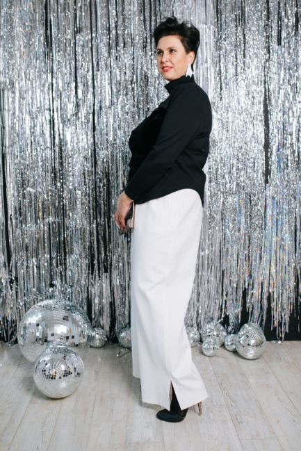 Параметры модели на фото: объем груди 117 см, объем талии 98 см, объем бедер 112 см, рост 168 см