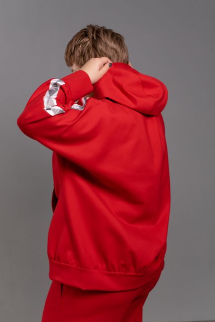 - Благодаря передней стойке капюшона, худи не съезжает назад и удачно подчёркивает линию лица