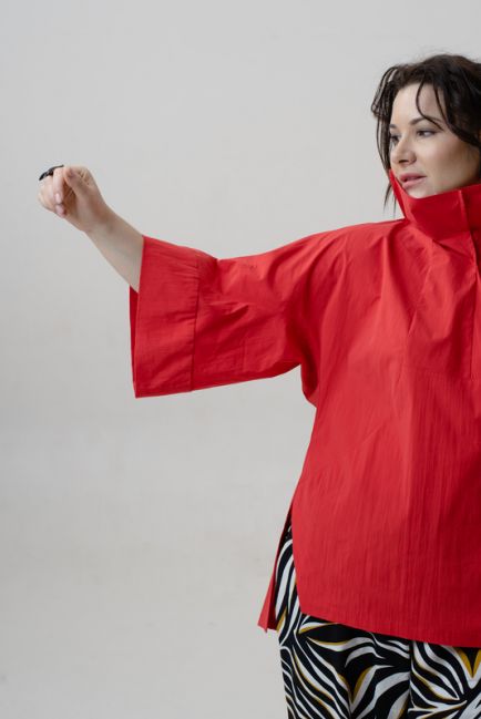 - Особая наша гордость - конструкция воротника-стойки. Топ легко одевается. Воротник красиво стоит, не стесняет движения головы и шеи. Конструкция воротника красиво оформляет лицо. Воротник можно подвернуть на любую сторону, создавая новые образы