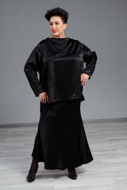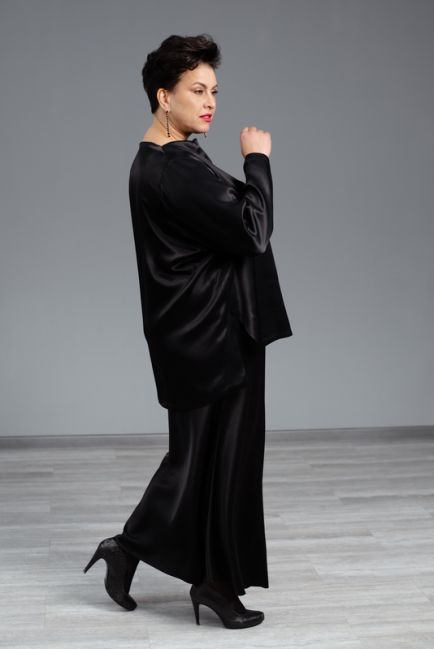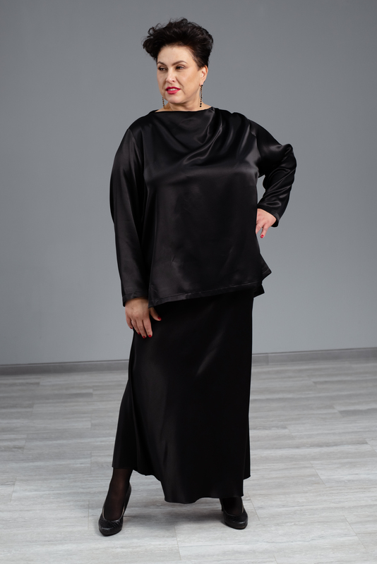 - Свитшот из атласа ложится более мягко, создавая текучий силуэт