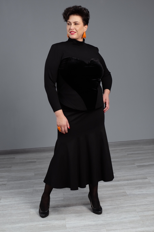 - Узкий верх и пышный низ формируют изящную фигуру