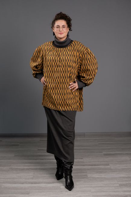 Параметры модели на фото: объем груди 120 см, объем талии 98 см, объем бедер 117 см, рост 168 см